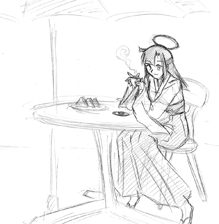 今日はゴスト「伏儀と華生」から伏儀さんを。 シチュは、たまには洋風にお茶をって感じ。 でもなんかゴチャゴチャしちゃったなぁ。失敗。 あ、スイマセン、矢次模様は手描きじゃメンドかったのでハショりました。(最低 PR ↓ハマさんとティトオ。